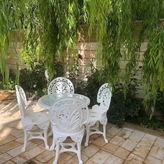 شامل 4عدد صندلی ومیز ودوعدد شیشه برای میز جنس پلیمر پلاستیک فشرده ضداب وافتاب قطر میز 80: ضداب وافتاب