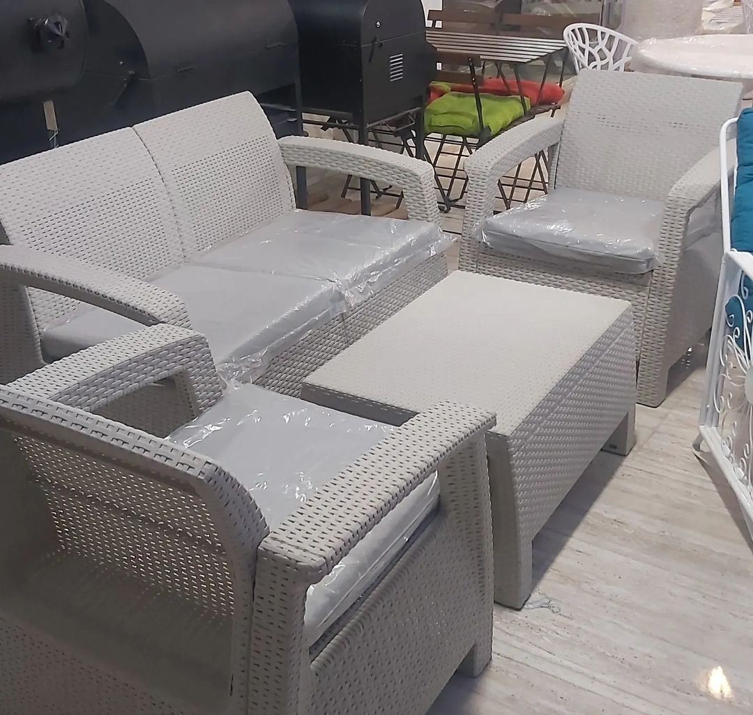 مبل حصیری مناسب بالکن وتراس بزرگ شامل 1عدد دونفره با تشک 2عدد تک نفره 1عدد میز جلو مبلی دارای رنگ بندی