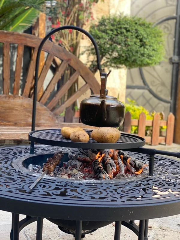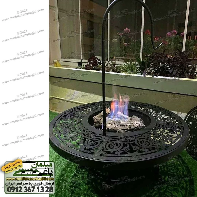 پوشش رنگ الکترو استاتیک قطرمیز 120 سانت و ارتفاع 50 سانت مخزن آتشدان هاکلا چدن مخصوص فضای باز، باغ و تراس ارسال به سراسر کشور