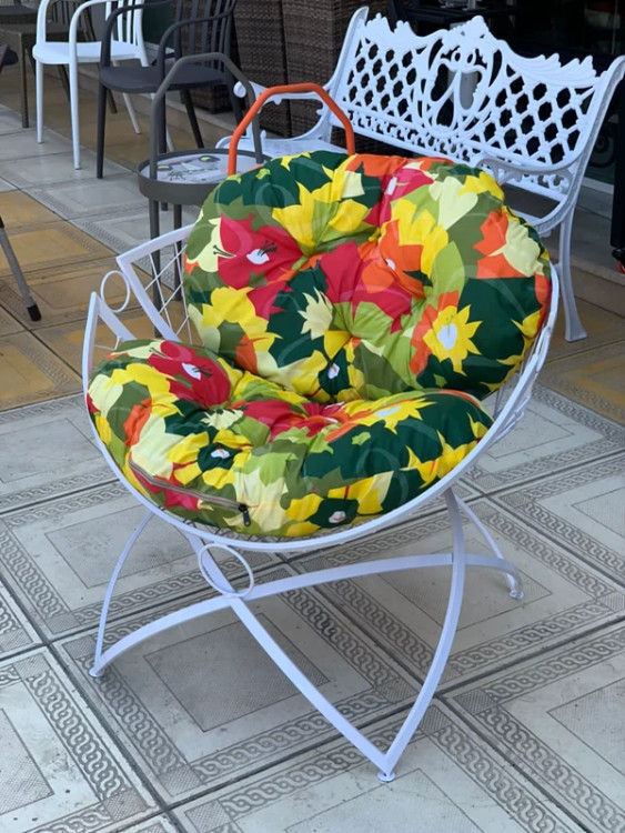 صندلی ویلایی مدل مهتاب قیمت هر عدد صندلی می باشد قیمت میز جداست به همراه تشک داخل تشک پر شده از الیاف در رنگ بندی ساده : قرمز توسی زرد گلدار :ابی جنگلی سبز جنگلی
