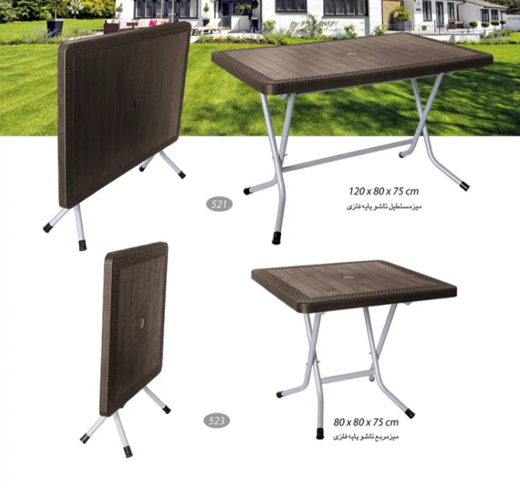 ست 6نفره برند ناصر شامل 6عدد صندلی پایه فلزی 1عدد میز 6نفره سایز 120 در 80 تاشو دارای رنگ بندی کرم توسی مشکی قهوه ای