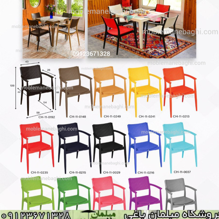 شامل 4عدد صندلی. ومیز سایز 80در 80جنس پلیمر /ضداب وافتاب/تحمل وزن بالا: دارای رنگ بندی