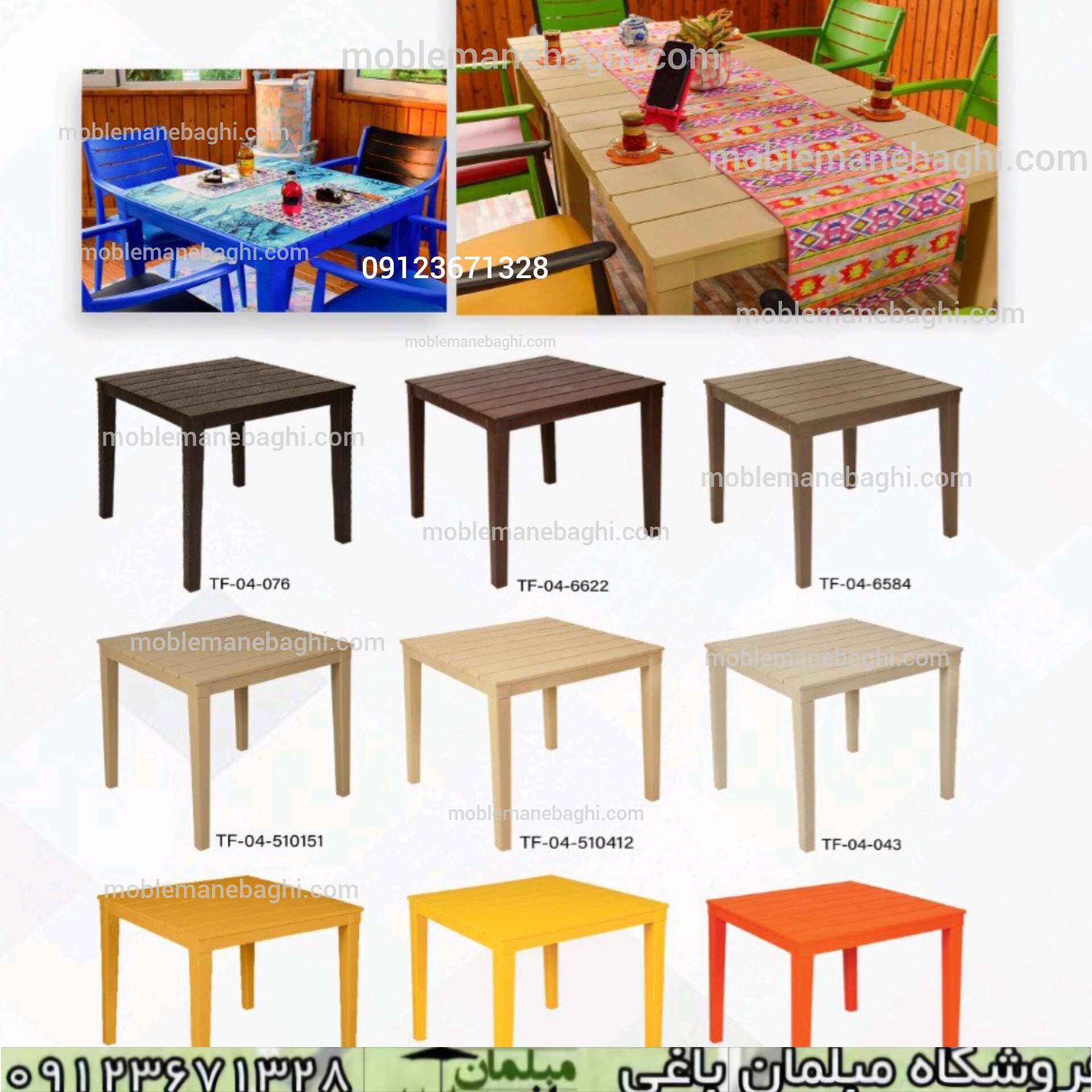 شامل 4عدد صندلی. ومیز سایز 80در 80جنس پلیمر /ضداب وافتاب/تحمل وزن بالا: دارای رنگ بندی