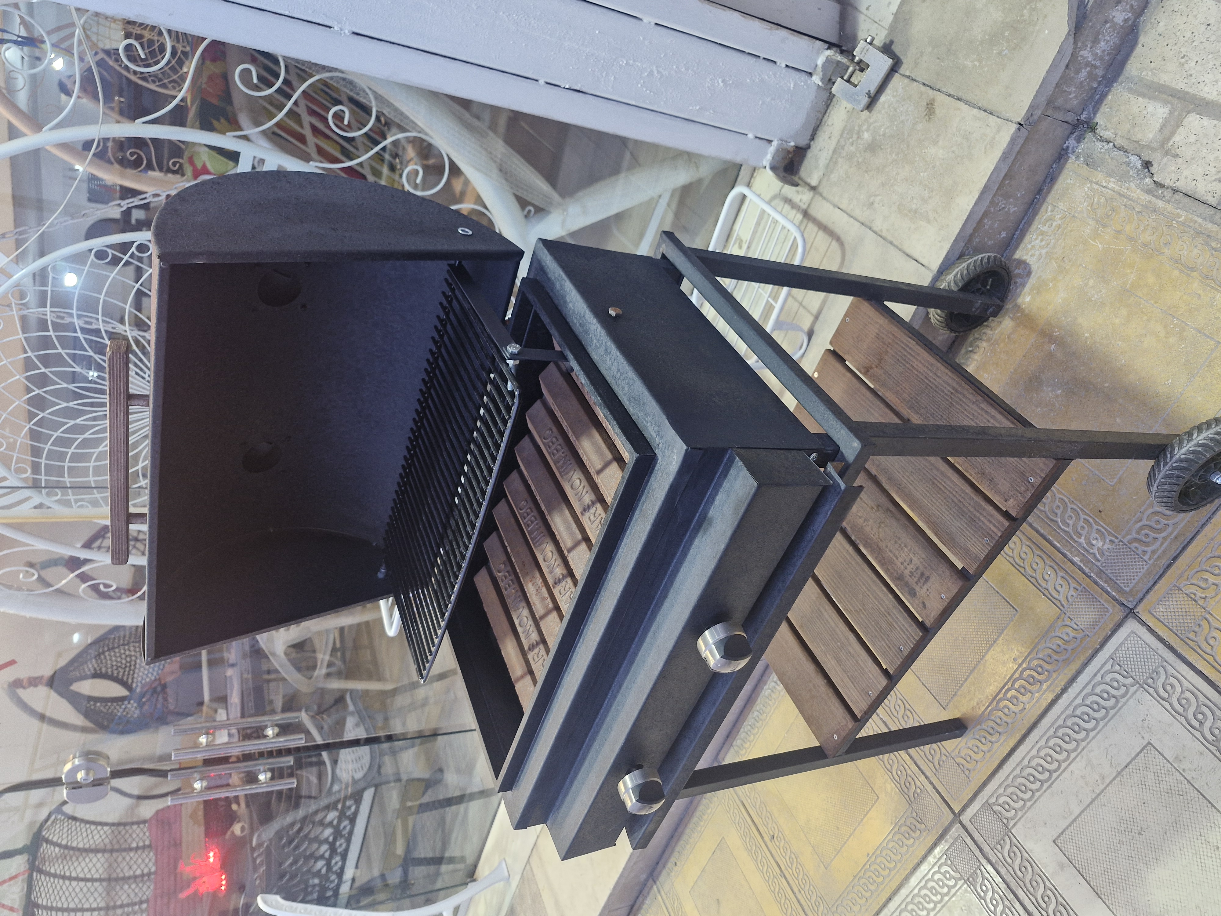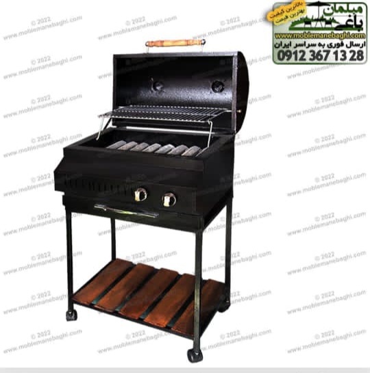 گازی/ دودکش دار/. دارای شلف استیل برای جوجه وماهی / کف چدن / چرخ دار / دارای صفحه تاشو / دارای سینی اشغالگیر یا چربی گیر /دارای درب/در سایز 80 وبالاتر دارای دوعدد قطع کن جدا شعله