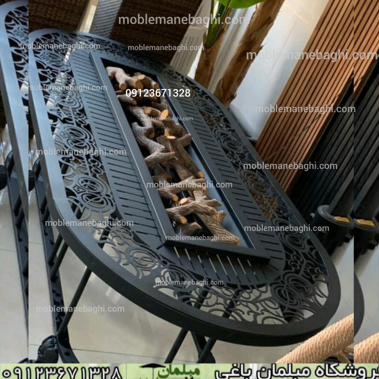 میز اتشدان مستطیل 8نفره صفحه دو میل طرح گل. قابل در ابعاد مختلف مخصوص باغ ویلا کافه رستوران