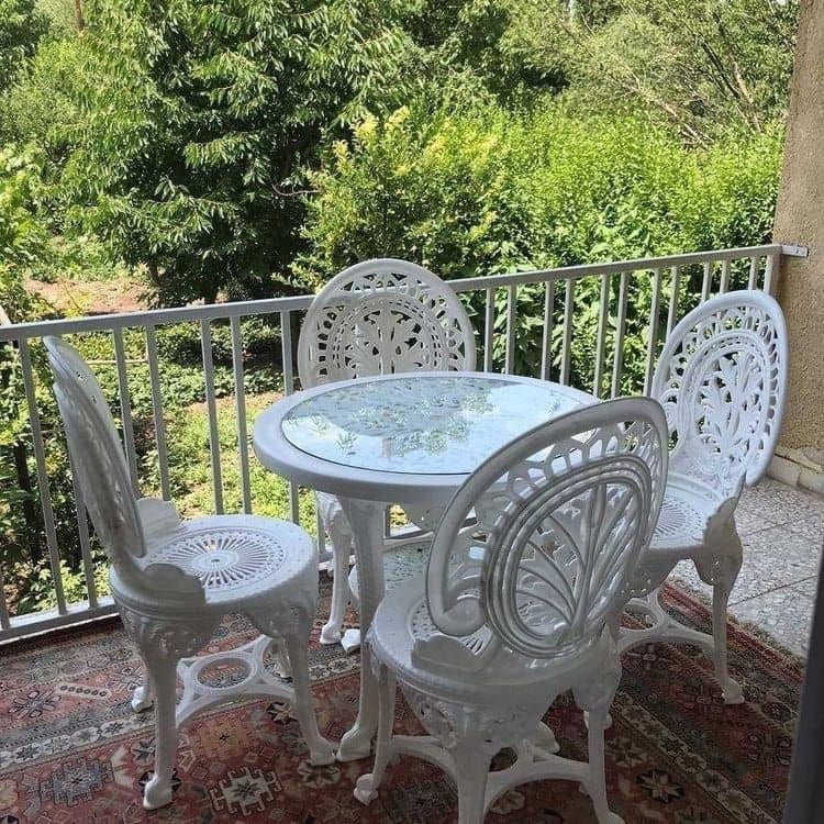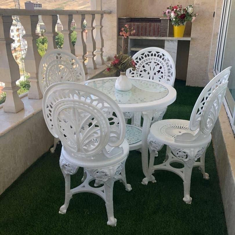 میز دارای قطر 80 بوده ست زیبایی صندلی طاووس جنس پلمیر ضداب وافتاب